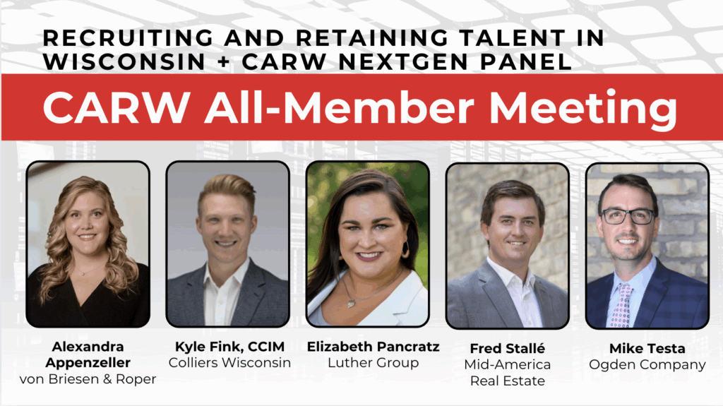 Join CARW for a timely and solutions-focused program exploring how recruitment and retention strategies drive economic growth and shape the future of both Wisconsin’s workforce and its commercial real estate market. Keynote speaker Ian Abston is the founder of Forward 48, Hoan Group, and NEWaukee, and is one of Wisconsin’s leading voices on generational engagement. He’s also spearheaded the Light the Hoan initiative that raised $4M to transform Milwaukee’s skyline. He will share insights on what the next generation of talent is looking for, thinking like an entrepreneur —and how companies, communities, and industries can adapt to keep them here.