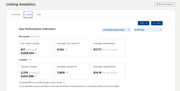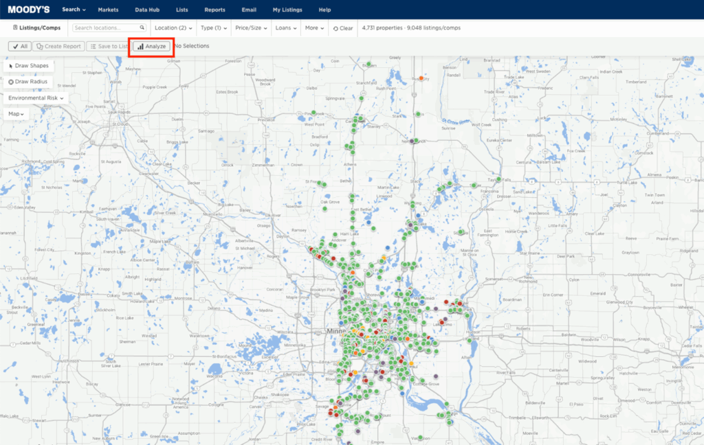 Click Analyze on the Moody’s CRE search page to dive deeper into an area, submarket, or selection of properties. Instantly access lease and sale details, KPI’s, comps, and market analytics—all in one view. The Analyze button gives you a complete picture of a property’s performance so you can make faster, data-driven decisions.